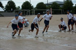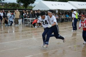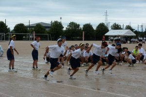 雨のために中断の時間もありましたが、みんなが一生懸命に協議、応援、係活動に取り組みました。