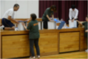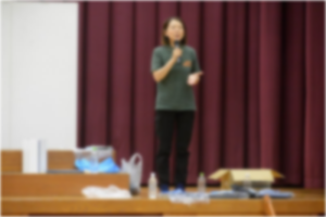 訓練後、防災アドバイザーの方から、避難場所での過ごし方等についてのお話をいただき、簡易トイレの組立をしました。