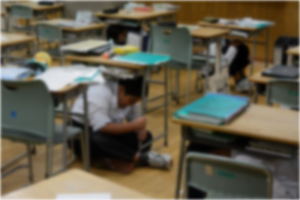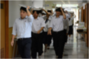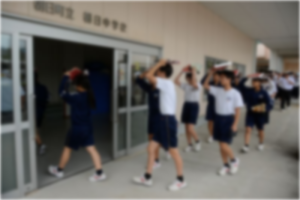 今回は休み時間に地震が発生したことを想定し、生徒には開始時刻を伝えずに実施しました。