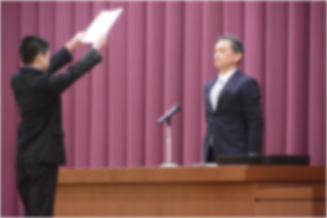 修了式では学年の代表が修了証を受け取りました。